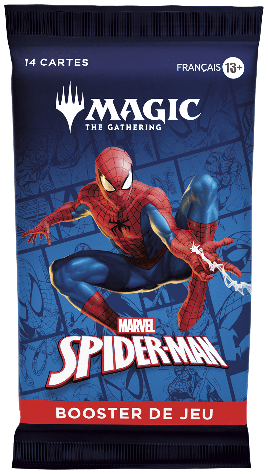 Spider-Man, l’ami du quartier, tisse sa toile dans Magic: The Gathering, et ce n’est pas trop tôt ! Rassemblez les lanceurs de toile de tout le Spider-Verse et faites équipe pour neutraliser les super-vilains qui menacent la ville. Utilisez vos sens d’araignée pour repérer les traitements sans bordure qui sortent tout droit d’une page de comic book !