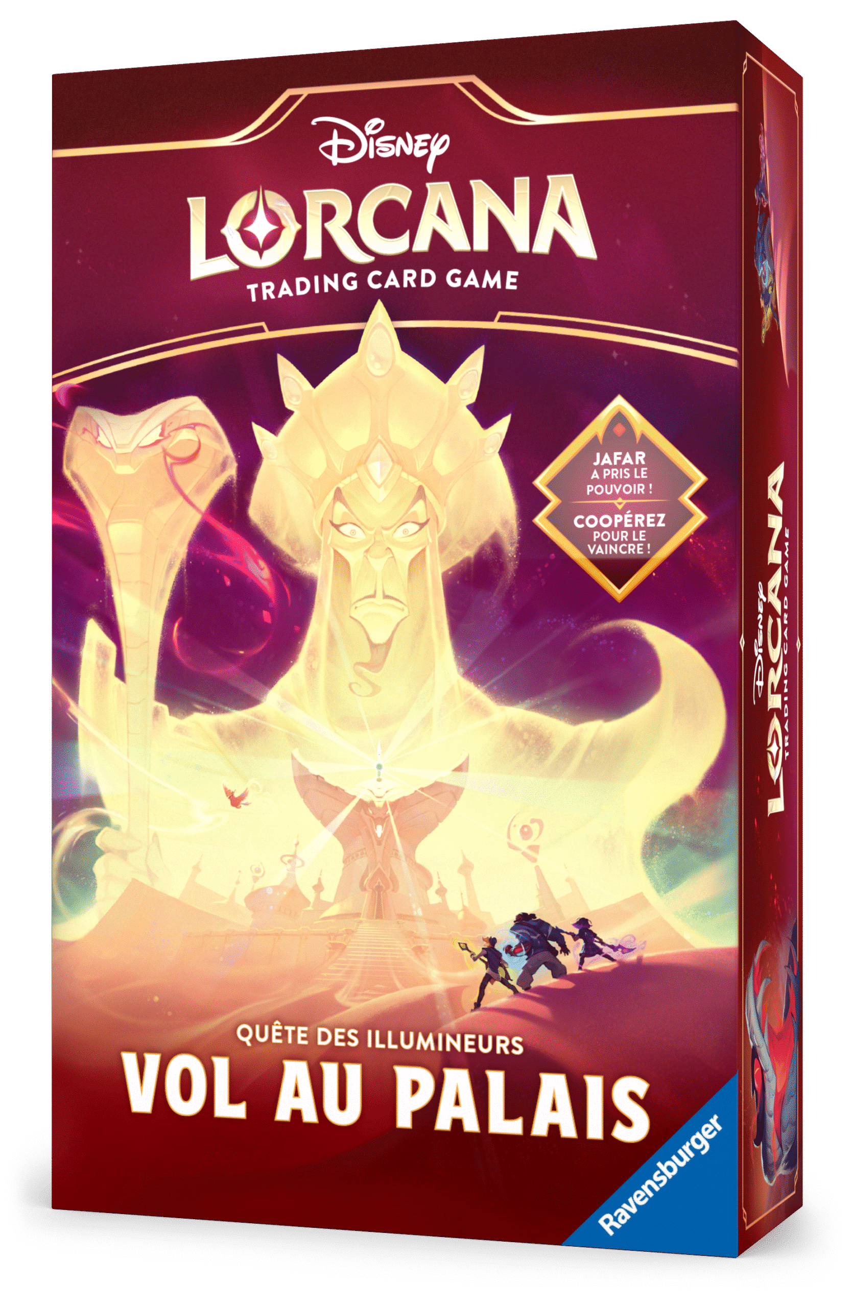 Grâce à ce coffret vous allez pouvoir jouer ensemble pour affronter Jafar ! C’est à vous et vos compagnons Illumineuses et Illumineurs de vous unir, en utilisant vos decks Disney Lorcana TCG pour vaincre la sorcier.