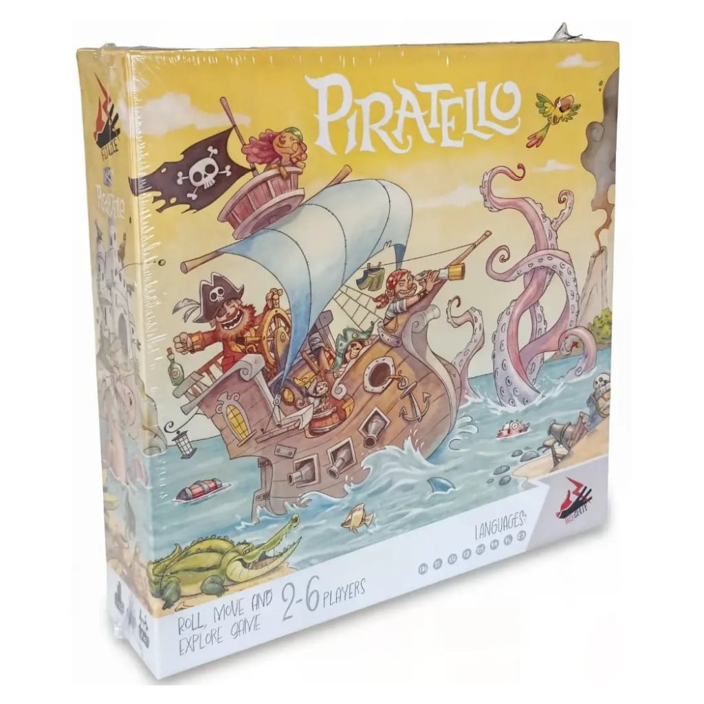 Piratello est un jeu d’aventure avec des pirates, des navires et des trésors. C’est un jeu pour toute la famille, facile à apprendre, au rythme rapide, avec deux bonus pour les pirates les plus téméraires.