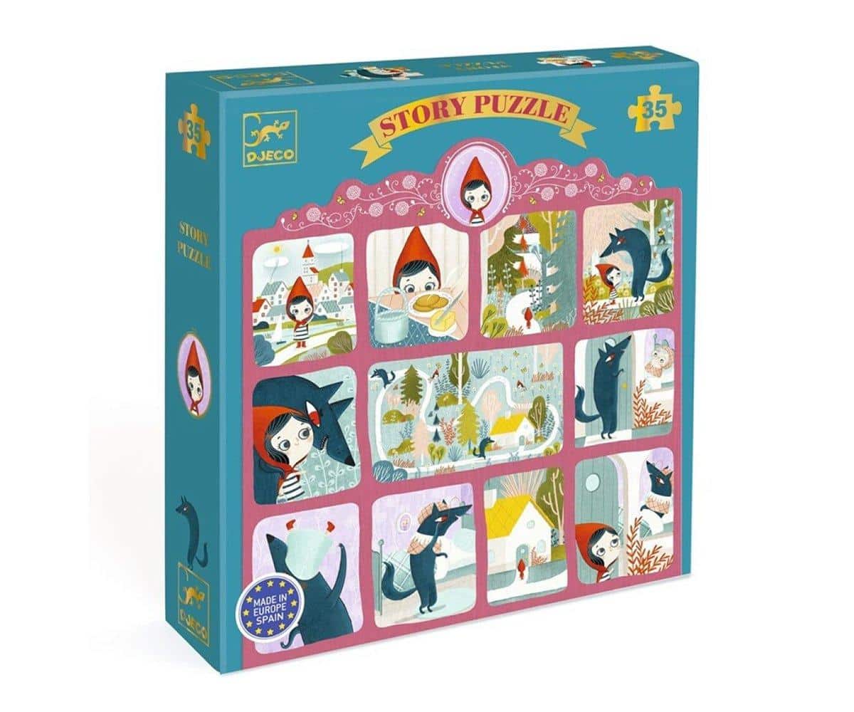 Dans Story Puzzle – Le Petit Chaperon Rouge – 35 Pièces, l’enfant reconstitue le puzzle, puis découvre l’histoire du petit chaperon rouge grâce à cette bande dessinée originale.